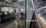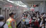 REPUBLIKA.CO.ID,TANGERANG -- Sejumlah penumpang menunggu keberangkatan KRL Commuter Line di Stasiun Tangerang, Kota Tangerang, Banten, Senin (3/1/2022).