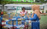 Anak didampingi orangtuanya bermain sebelum menerima dosis vaksin Covid-19 saat vaksinasi khusus untuk TK/Paud/Raudhotul Athfal (RA) di TK Kartika X-16, Mampang Prapatan, Jakarta, Selasa (4/1). Pemerintah mencatat per 31 desember 2021 telah berhasil menyuntikan 280 juta dosis vaksin Covid-19 yang terdiri dari dosis 1 mencapai 165,2 juta dosis, dosis 2 mencapai 113,8 juta dosis, dan dosis 3 mencapai 1,3 juta dosis. (FOTO : Republika/Thoudy Badai)