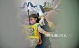 Anak bermain sebelum menerima vaksin Covid-19 saat vaksinasi khusus untuk TK/Paud/Raudhotul Athfal (RA) di TK Kartika X-16, Mampang Prapatan, Jakarta, Selasa (4/1). Pemerintah mencatat per 31 desember 2021 telah berhasil menyuntikan 280 juta dosis vaksin Covid-19 yang terdiri dari dosis 1 mencapai 165,2 juta dosis, dosis 2 mencapai 113,8 juta dosis, dan dosis 3 mencapai 1,3 juta dosis. Republika/Thoudy Badai (FOTO : Republika/Thoudy Badai)