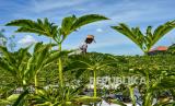 Petani merawat tanaman porang di Dusun Babakan, Desa Cikoneng, Kabupaten Ciamis, Jawa Barat, Selasa (4/1/2022). Kementerian Pertanian menargetkan luas tanam umbi porang pada tahun 2024 akan mencapai 100 ribu hektare dibandingkan saat ini yang baru 10 ribu hektare lahan. (FOTO : Antara/Adeng Bustami)