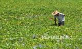 REPUBLIKA.CO.ID,CIAMIS -- Petani merawat tanaman porang di Dusun Babakan, Desa Cikoneng, Kabupaten Ciamis, Jawa Barat, Selasa (4/1/2022).