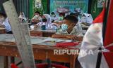 REPUBLIKA.CO.ID,SERANG -- Sejumlah siswa mengikuti pembelajaran tatap muka (PTM) secara terbatas di SD Negeri Bhayangkari, Kota Serang, Banten, Selasa (4/1/2022).
