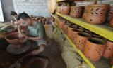 REPUBLIKA.CO.ID, Sejumlah perajin memproduksi kerajinan gerabah di Pagerjurang, Paseban, Bayat, Klaten, Jawa Tengah, Senin (3/1/2022). Menurut perajin, hasil produksi gerabah yang dijual dari harga Rp5 ribu hingga Rp850 ribu itu saat ini mengalami penurunan yang biasanya dapat memproduksi gerabah sebanyak 100 biji per hari menjadi 60 biji per hari karena cuaca yang tidak menentu saat musim penghujan. ANTARA FOTO/Aloysius