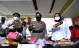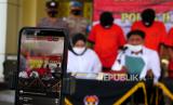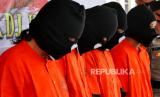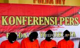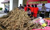 REPUBLIKA.CO.ID, BANDUNG -- Konferensi pers pengungkapan peredaran ganja di Polda DIY, Rabu (5/1). Dari pengungkapan kasus peredaran narkotika jenis ganja ini ditangkap lima tersangka. Barang bukti yang disita sebanyak 7,573 kilogram ganja dari jaringan Yogyakarta, Bandung, dan Bogor.