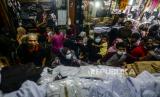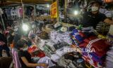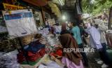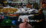 REPUBLIKA.CO.ID,JAKARTA-- Pedagang seragam sekolah melayani calon pembeli di Pasar Mester Jatinegara, Jakarta, Rabu (5/1).
