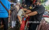 Calon pembeli mengukur celana sekolah untuk anaknya di Pasar Mester Jatinegara, Jakarta, Rabu (5/1). Menurut pedagang, penjualan seragam sekolah mengalami peningkatan setelah seluruh sekolah di DKI Jakarta melaksanakan pembelajaran tatap muka (PTM) berkapasitas 100 persen dengan menerapkan protokol kesehatan Covid-19. Republika/Putra M. Akbar (FOTO : Republika/Putra M. Akbar)