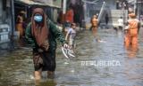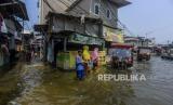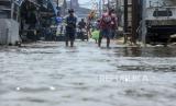 REPUBLIKA.CO.ID,JAKARTA-- Warga berjalan saat terjadi banjir rob di Pelabuhan Kali Adem, Muara Angke, Jakarta, Rabu (5/1).