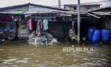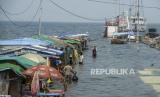 Banjir rob rendam rumah warga di kawasan Muara Angke dan putus akses menuju Dermaga. .