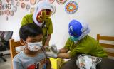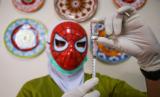 REPUBLIKA.CO.ID, JAKARTA -- Tenaga kesehatan menggunakan topeng pahlawan super saat akan menyuntikkan vaksin COVID-19 untuk anak usia 6-11 tahun di RSIA Tambak, Jakarta, Rabu (5/1/2022). Penggunaan topeng pahlawan super tersebut bertujuan menarik minat anak-anak untuk mengikuti program vaksinasi COVID-19.