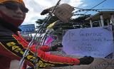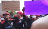 REPUBLIKA.CO.ID, SERANG -- Sejumlah buruh yang tergabung dalam Aliansi Serikat Pekerja Nasional (ASPN) berunjuk rasa di depan Kantor Gubernur Banten di Serang, Banten, Rabu (5/1/2022). Mereka mendesak Gubernur Banten Wahidin Halim untuk merevisi kenaikan Upah Minimum Kabupaten/Kota yang naik hanya 1,5 persen menjadi 5,4 persen. ANTARA FOTO/Asep Fathulrahman/wsj