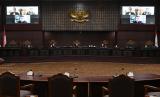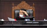 REPUBLIKA.CO.ID,JAKARTA -- Ketua Majelis Hakim Konstitusi (MK) Anwar Usman memimpin sidang pengujian materiil Undang-undang Nomor 7 Tahun 2017 tentang Pemilhan Umum di Mahkamah Konstitusi, Jakarta, Kamis (6/1/2022).