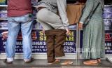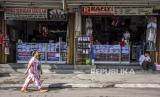Warga melintas di depan toko seragam sekolah di kawasan pertokoan, Jalan Cipaera, Lengkong, Kota Bandung, Jumat (7/1). Pedagang di kawasan tersebut menyatakan, jelang pelaksanaan pembelajaran tatap muka (PTM) 100 persen di Kota Bandung yang akan dimulai pada Senin (10/1), penjualan seragam sekolah mengalami penurunan hingga 50 persen dibandingkan dengan tahun sebelumnya. Foto: Republika/Abdan Syakura (FOTO : REPUBLIKA/ABDAN SYAKURA)