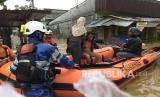 REPUBLIKA.CO.ID, JAYAPURA -- Petugas SAR Jayapura mengevakuasi warga yang terjebak banjir di Pasar Youtefa Abepura, Jayapura, Papua, Jumat (7/1/2022). Hujan deras dari malam hingga pagi menyebabkan sejumlah wilayah di Jayapura terendam banjir. ANTARA FOTO/HO/Humas SAR Jayapura/wpa/hp