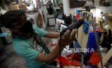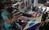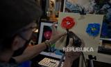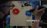 REPUBLIKA.CO.ID,JAKARTA -- Seniman Teguh Joko Dwiyono menunjukkan kemampuannya merangkai limbah plastik menjadi sebuah lukisan di workshop sekaligus galeri miliknya di Rawamangun, Jakarta, Jumat (7/1).