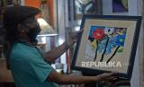 Seniman Teguh Joko Dwiyono menunjukkan hasil kemampuannya merangkai limbah plastik menjadi sebuah lukisan di workshop sekaligus galeri miliknya di Rawamangun, Jakarta, Jumat (7/1). Kreatifitas pengolahan limbah sampah plastik menjadi karya seni ini diharapkan mampu mengatasi permasalahan sampah plastik khusunya di lingkungan rumah tangga. Dwiyono juga mengajarkan Kreatifitas tersebut kepada ibu-ibu PKK demi menjaga lingkungan.Prayogi/Republika. (FOTO : Prayogi/Republika.)