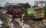 Pengemudi truk mengarahkan pengemudi mobil yang terjebak di jalan Trans Kalimantan yang rusak di Kecamatan Liang Anggang, Banjarbaru, Kalimantan Selatan, Jumat (7/1/2022). Proyek rehabilitasi Jalan Ahmad Yani Lianganggang Kota Banjarbaru hingga batas Kabupaten Tanah Laut yang menelan anggaran sebesar Rp74 miliar itu hingga kini tak kunjung selesai dan telah melewati batas waktu pengerjaan yang seharusnya yaitu pada 31 Desember 2021 lalu dan berdampak pada ekonomi masyarakat setempat. (FOTO : ANTARA/Bayu Pratama S)