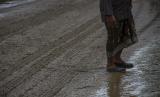 Warga melintasi Jalan Trans Kalimantan yang berlumpur di Kecamatan Liang Anggang, Banjarbaru, Kalimantan Selatan, Jumat (7/1/2022). Proyek rehabilitasi Jalan Ahmad Yani Lianganggang Kota Banjarbaru hingga batas Kabupaten Tanah Laut yang menelan anggaran sebesar Rp74 miliar itu hingga kini tak kunjung selesai dan telah melewati batas waktu pengerjaan yang seharusnya yaitu pada 31 Desember 2021 lalu dan berdampak pada ekonomi masyarakat setempat. (FOTO : ANTARA/Bayu Pratama S)