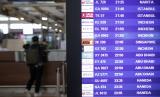 Seorang penumpang pesawat antre di loket dekat papan jadwal penerbangan di Terminal 3 Bandara Internasional Soekarno-Hatta, Tangerang, Banten, Jumat (7/1/2022). Pemerintah untuk sementara menutup pintu masuk bagi warga dari Afrika Selatan, Botswana, Norwegia, Prancis, Angola, Zambia, Zimbabwe, Malawi, Mozambique, Namibia, Eswatini, Lesotho, Inggris dan Denmark dalam upaya mencegah penyebaran COVID-19 tipe SARS-CoV-2 varian B.1.1.529 atau Omicron yang berlaku hari ini (7/1/2022). (FOTO : ANTARA/FAUZAN)