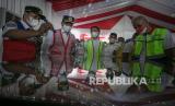 Menteri Perhubungan Budi Karya Sumadi (kedua kiri), Gubernur Jawa Tengah Ganjar Pranowo (kanan) dan Wali Kota Solo Gibran Rakabuming Raka (ketiga kiri) mendengarkan penjelasan mengenai proyek pembangunan rel layang saat acara Peletakan Batu Pertama Pembangunan Jalur Rel Ganda dan Rel Layang Simpang Joglo di Solo, Jawa Tengah, Sabtu (8/1/2022). Kementerian Perhubungan akan membangun jalur rel kereta api ganda tahap I sepanjang 10 km dari Stasiun Balapan sampai Kalioso dengan anggaran sekitar Rp920 milliar yang dilengkapi konstruksi elevated rail atau rel layang di simpang Joglo untuk mengatasi kemacetan. (FOTO : Antara/Mohammad Ayudha)