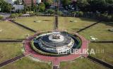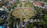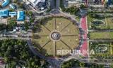 REPUBLIKA.CO.ID, PALANGKARAYA -- Foto udara kawasan simpang enam Bundaran Besar di Palangkaraya, Kalimantan Tengah, Sabtu (8/1/2022). Pemerintah Provinsi Kalimantan Tengah akan merenovasi kawasan Bundaran Besar Palangkaraya yang menjadi ikon ibu kota provinsi tersebut mulai tahun 2022 hingga 2024 mendatang dengan anggaran sebesar Rp125 miliar serta menggunakan sistem Multi Years Contract (MYC).