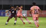 REPUBLIKA.CO.ID, DENPASAR -- Pesepak bola Madura United Beto Goncalves (kanan) berebut bola dengan pesepak bola PSM Makassar Ganjar Mukti dalam pertandingan sepak bola Liga 1 di Stadion Kompyang Sujana, Denpasar, Bali, Sabtu (8/1/2022). PSM Makassar menang atas Madura United dengan skor 1-0.