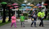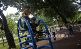 REPUBLIKA.CO.ID, JAKARTA -- Warga beraktivitas di Taman Lapangan Banteng, Jakarta, Ahad (9/1). Pemerintah telah memperpanjang pemberlakuan pembatasan kegiatan masyarakat (PPKM) Jawa-Bali dengan status level 2 dari tanggal 4-17 Januari 2022.