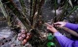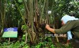 Petani salak melakukan penyerbukan secara manual di perkebunan salak Turi, Sleman, Yogyakarta, Senin (10/1). Salak Pondok hasil dari petani Turi sudah menjangkau pasar ekspor. Untuk 2021 lalu ekspor salak mencapai 160 ton dan turun imbas pandemi Covid-19. Salak Pondok yang diekspor merupakan hasil berkebun secara organik. Di tingkat petani salak pondoh kualitas ekspor dihargai Rp 5 ribu perkilogram. (FOTO : Wihdan Hidayat / Republika)