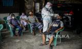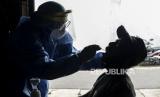 REPUBLIKA.CO.ID,JAKARTA - - Petugas kesehatan melakukan tes usap kepada warga di kawasan Krukut, Taman Sari, Jakarta, Senin (10/1).