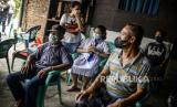 Sejumlah warga menunggu pelaksanaan tes usap di kawasan Krukut, Taman Sari, Jakarta, Senin (10/1). Ditargetkan sebanyak 500 warga mengikuti tes usap massal Covid-19 pasca ditemukannya 36 warga yang positif Covid-19 hingga membuat 4 RT melakukan mikro lockdown. Republika/Putra M. Akbar (FOTO : Republika/Putra M. Akbar)