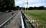 Pesepeda melintas di Alun-Alun Utara Yogyakarta, Senin (10/1). Sepekan terakhir ini ramai diperbincangkan terkait penjualan Alun-Alun Utara Yogyakarta secara virtual di metaverse. Pemerintah Daerah Istimewa Yogyakarta menyebut hal itu hanya klaim sepihak. Selain Alun-Alun Utara, tempat lain yang dijual melalui metaverse yakni Gedung Agung, Kantor Kepatihan, dan Puro Pakualaman. (FOTO : Wihdan Hidayat / Republika)