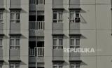 Pasien Covid-19 berjemur di jendela Rumah Sakit Darurat Covid-19 (RSDC) Wisma Atlet, Kemayoran, Jakarta, Senin (10/1). Jumlah pasien terkonfirmasi positif covid-19 di RSDC Wisma Atlet sebanyak 1.978 orang atau bertambah 140 orang dari sebelumnya 1.838 orang, sementara menurut Juru Biara Pemerintah untuk penanganan Covid-19, bed occupancy rate (BOR) mencapai 53,82 persen di tower 5 dan 6 RSDC Wisma Atlet Kemayoran. Republika/Thoudy Badai (FOTO : Republika/Thoudy Badai)