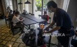 Praktisi kopi Fransikus Satriawan memberikan penjelasan membuat kopi kepada anak berkebutuhan khusus di The Home, Cilandak, Jakarta, Selasa (11/1). Pelatihan membuat kopi tersebut untuk memberikan pembekalan wirausaha kepada anak berkebutuhan khusus setelah menyelesaikan pendidikan di Sekolah Luar Biasa (SLB). (FOTO : Republika/Putra M. Akbar)