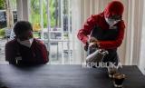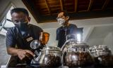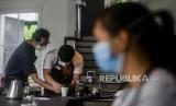 REPUBLIKA.CO.ID,JAKARTA -- Praktisi kopi Fransikus Satriawan memberikan penjelasan membuat kopi kepada anak berkebutuhan khusus di The Home, Cilandak, Jakarta, Selasa (11/01/2022).