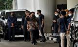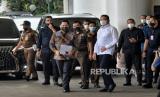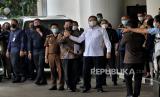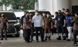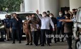REPUBLIKA.CO.ID,JAKARTA -- Menteri BUMN Erick Thohir melambaikan tangan saat tiba di Gedung Kartika Adhyaksa Kejaksaan Agung Republik Indonesia, Jakarta, Selsa (11/01/2022).
