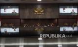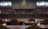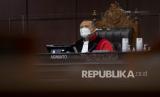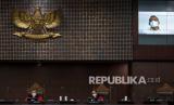 REPUBLIKA.CO.ID,JAKARTA -- Ketua Majelis Hakim Konstitusi (MK) Aswanto memimpin sidang pengujian materiil Undang-undang Nomor 7 Tahun 2017 tentang Pemilhan Umum di Mahkamah Konstitusi, Jakarta, Selasa (11/1/2022).