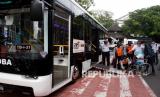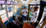 REPUBLIKA.CO.ID, JAKARTA -- Perwakilan Tim Advokasi Difabel bersama petugas Dinas Perhubungan Solo berada di dalam bus low deck (bus dengan lantai rendah) saat uji coba di Solo, Jawa Tengah, Selasa (11/1/2022). Uji coba kendaraan prototipe bus ramah difabel tersebut merupakan bagian dari komitmen Pemkot Solo untuk mewujudkan Kota Solo sebagai kota ramah difabel.