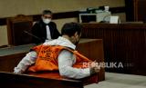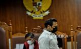 Terdakwa musisi I Gede Ari Astina alias Jerinx saat menjalani sidang terkait kasus dugaan pengancaman dengan kekerasan di Pengadilan Negeri (PN) Jakarta Pusat, Rabu (12/1). Sidang tersebut beragendakan pemeriksaan saksi yang di hadirkan jaksa penuntu umum (JPU) diantaranya pelapor sekaligus pegiat media sosial Adam Deni. Republika/Thoudy Badai (FOTO : Republika/Thoudy Badai)