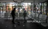 Petugas kebersihan membersihkan salah satu ruangan di Mal Pelayanan Publik (MPP) Kota Bandung, Jalan Cianjur, Batununggal, Kota Bandung, Kamis (13/1/2022). Mal Pelayanan Publik yang menyediakan sedikitnya 26 jenis pelayanan dari berbagai instansi tersebut akan beroperasi secara keseluruhan pada April 2022 mendatang guna mempermudah pelayanan kebutuhan masyarakat. Foto: Republika/Abdan Syakura (FOTO : REPUBLIKA/ABDAN SYAKURA)