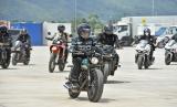Presiden Joko Widodo (depan) turun dari sepeda motor custom Kawasaki W175 bergaya chopper bobber tiba di Pertamina Mandalika International Street Circuit di Desa Kuta, Kecamatan Pujut, Praya, Lombok Tengah, NTB, Kamis (13/1/2022). Kunjungan kerja tersebut untuk mengecek kesiapan jelang event MotoGP yang akan diselenggarakan di Mandalika, Lombok. (FOTO : ANTARA/Ahmad Subaidi)