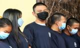 REPUBLIKA.CO.ID,PONTIANAK -- Lima dari sembilan pelaku dihadirkan saat rilis ungkap kasus prostitusi daring di Pontianak, Kalimantan Barat, Kamis (13/1/2022).