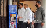 REPUBLIKA.CO.ID, LOMBOK TENGAH -- Presiden Joko Widodo (kiri) mengunjungi pameran UMKM Bazar Mandalika, di KEK Mandalika, Desa Kuta, Kecamatan Pujut, Praya, Lombok Tengah, NTB, Kamis (13/1/2022). Penyelenggaraan event MotoGP 2022 diharapkan menjadi ajang promosi produk UMKM sekaligus mendorong pertumbuhan ekonomi kreatif di NTB.