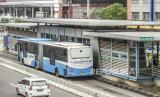 REPUBLIKA.CO.ID,JAKARTA -- Transjakarta melintas di Halte Glodok, Jakarta, Jumat (14/1/2022).