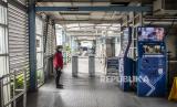 Petugas Transjakarta menunggu calon penumpang di Halte Glodok, Jakarta, Jumat (14/1/2022). PT MRT Jakarta (Perseroda) akan membongkar Halte TransJakarta Glodok untuk persiapan pekerjaan konstruksi proyek MRT Jakarta Fase 2A. (FOTO : ANTARA/Muhammad Adimaja/rwa.)