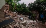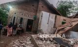 REPUBLIKA.CO.ID, LEBAK -- Warga melihat kondisi rumah yang rusak akibat gempa di Kadu Agung Timur, Lebak, Banten, Jumat (14/1/2022). Gempa berkekuatan dengan magnitudo 6,7 mengguncang Banten selama hampir satu menit.