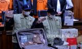 REPUBLIKA.CO.ID, JAKARTA -- Barang bukti diperlihatkan saat konferensi pers pengumuman dan penahanan tersangka di Gedung KPK Merah Putih, Jakarta, Kamis (13/1).