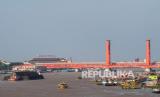 REPUBLIKA.CO.ID, PALEMBANG -- Sebuah kapal tongkang pengangkut batu bara melintas di Sungai Musi, Palembang, Sumatera Selatan, Jumat (14/1/2022). Kementerian Energi dan Sumber Daya Mineral (ESDM) menetapkan target produksi batu bara 2022 mencapai 663 juta ton yang diperuntukkan untuk konsumsi domestik/domestik market obligation (DMO) sebesar 165,7 juta ton sedangkan sisanya 497,2 juta ton akan mengisi pasar ekspor.