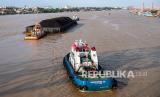 Sebuah kapal tongkang pengangkut batu bara melintas di Sungai Musi, Palembang, Sumatera Selatan, Jumat (14/1/2022). Kementerian Energi dan Sumber Daya Mineral (ESDM) menetapkan target produksi batu bara 2022 mencapai 663 juta ton yang diperuntukkan untuk konsumsi domestik/domestik market obligation (DMO) sebesar 165,7 juta ton sedangkan sisanya 497,2 juta ton akan mengisi pasar ekspor. (FOTO : Antara/Nova Wahyudi)