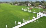 Foto udara Desa Wisata Sejahtera di Bulango Selatan, Kabupaten Bone Bolango, Gorontalo, Sabtu (15/1/2022). Objek wisata baru tersebut menyajikan suasana dan pemandangan persawahan yang dilengkapi dengan kolam pancing, gazebo, serta kuliner lokal bagi wisatawan. (FOTO : Antara/Adiwinata Solihin)
