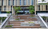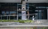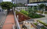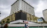 REPUBLIKA.CO.ID,JAKARTA -- Warga melintas di samping proyek renovasi Gedung Sarinah di Jakarta, Sabtu (15/1/2022).