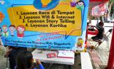 REPUBLIKA.CO.ID, YOGYAKARTA -- Anak-anak memanfaatkan layanan Mobil Internet dan Perpustakaan Kewilayahan (Monika) di Skate Park Pasar Satwa dan Tanaman Hias Yogyakarta (PASTY), Ahad (16/1/2022). Pascapelonggaran PPKM, layanan Monika milik Perpustakaan Kota Yogyakarta kembali mendatangi fasilitas umum. Setiap Sabtu dan Ahad, perpustakaan keliling berada di kawasan bermain anak-anak di Pasty. Selain itu, layanan ini juga dilakukan di Kemantren atau Kelurahan.